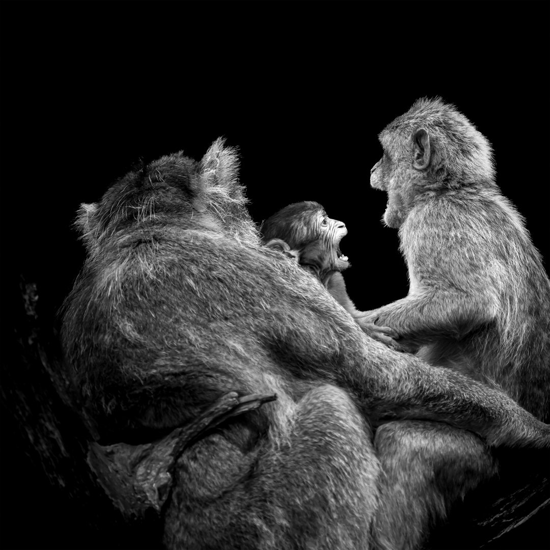 Discover the raw emotion and striking beauty of primate life with this black and white fine art framed limited edition print of an infant macaque shouting at adult family members. The dramatic contrast and intimate moment capture the social dynamics, curiosity, and energy of macaque behavior—perfect for wildlife lovers, modern art collectors, and nature-inspired home décor. Printed on premium archival materials, this artwork adds a bold, expressive touch to any wall.