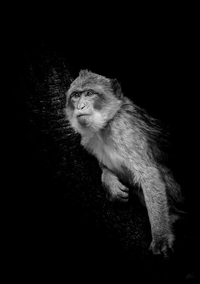 Transform your space with this stunning black and white limited edition photograph of lively monkeys, bringing the wild’s raw beauty into your home.