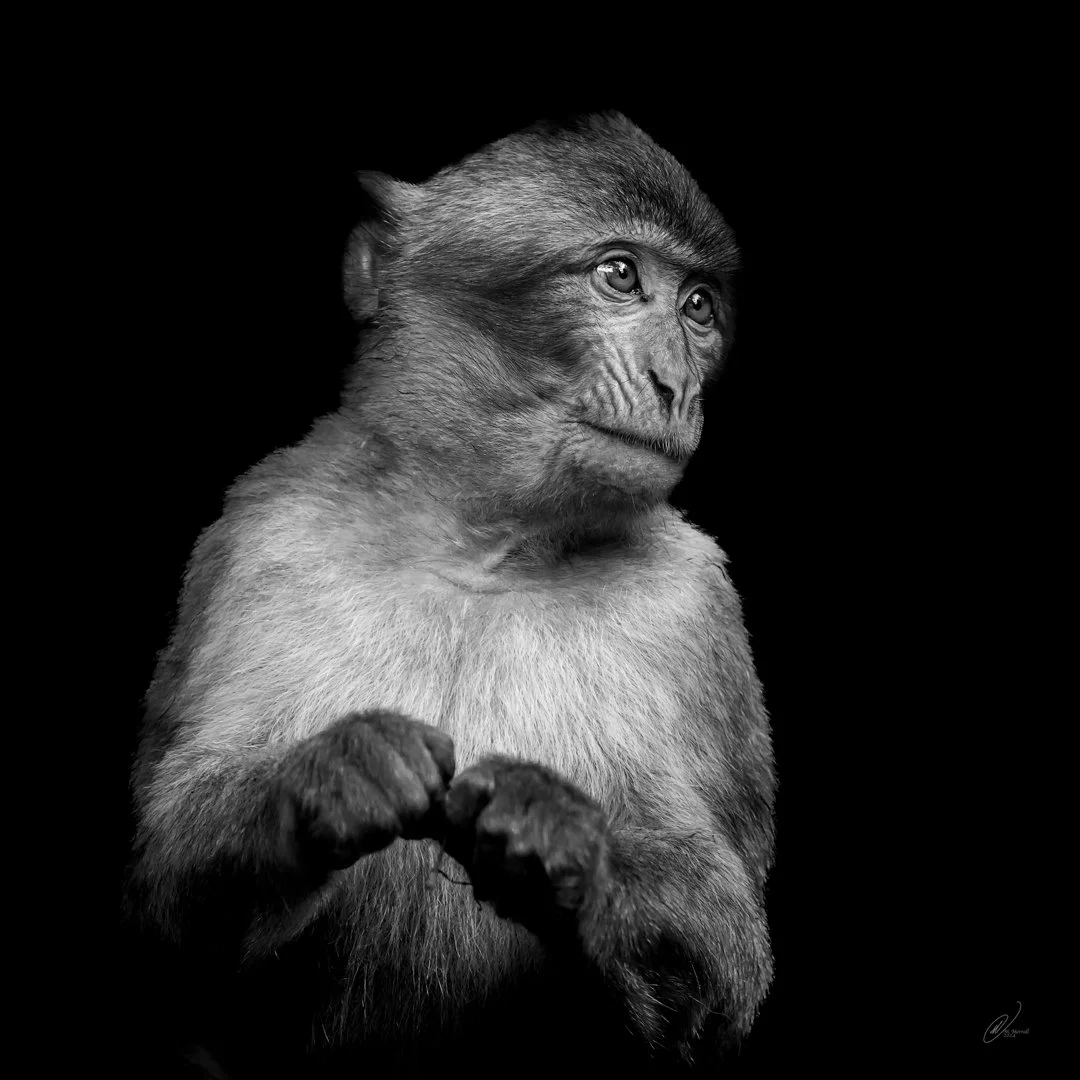 Transform your space with the captivating gaze of a macaque in this breathtaking black-and-white wall art piece. Perfect for animal lovers and art enthusiasts alike.